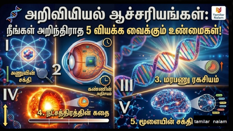 : 🧬 அறிவியல் ஆச்சரியங்கள்: நீங்கள் அறிந்திராத 5 வியக்க வைக்கும் உண்மைகள்! - அறிவியல் ஆச்சரியங்கள், விண்வெளி ரகசியங்கள், மனித உடல் அதிசயங்கள், அறிவியல் தகவல்கள் 2026, தமிழர் நலம் அறிவியல். [ அறிவியல் ஆச்சரியங்கள் ] | : Amazing Science Facts 2026: Mind-blowing Discoveries about Space & Biology. - Amazing science facts in Tamil, Space mysteries 2026, Human body wonders, Science education Tamil, Tamilar Nalam facts. in Tamil [ Amazing science ]