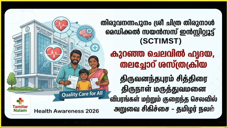 Focus Keywords (English): SCTIMST Thiruvananthapuram Guide, Affordable Heart Surgery India, Low Cost Neurology Treatment, Sree Chitra Tirunal Hospital Contacts, Free Medical Treatment for BPL, Best Cardiology Hospital South India, Tamilar Nalam Health.