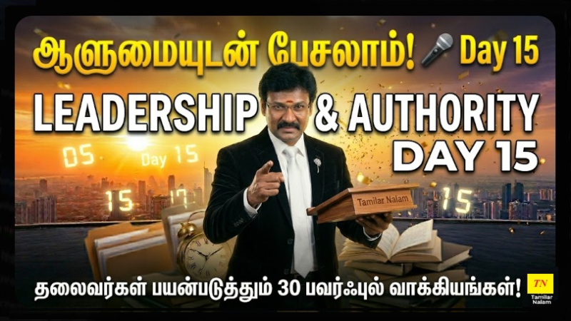 இதோ நாம் புதிய உத்வேகத்துடன் மூன்றாவது வாரத்தில் (Day 15) அடியெடுத்து வைக்கிறோம். இந்த வாரம் நாம் இன்னும் ஒரு படி மேலே சென்று, 'Leadership & Public Speaking' (தலைமைப்பண்பு மற்றும் மேடைப் பேச்சு) சார்ந்த 30 வாக்கியங்களைக் கற்கப் போகிறோம். இவை உங்கள் வாசகர்களை ஒரு கூட்டத்தில் தனித்துத் தெரியச் செய்யும்.